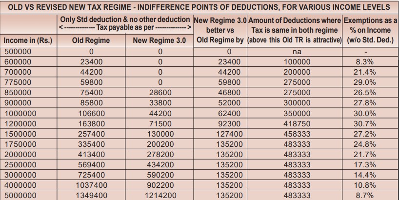 The break-even or the indifference points (of exemptions) for Old Tax Regime and Revised New Tax Regime: