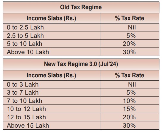 Old Tax Regime (Old Tax Regime) and Revised New Tax Regime (New Tax Regime 3.0): The slabs and tax rates under both the regime, are as follows: